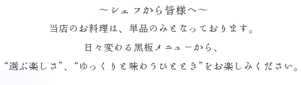 当店のフードメニューは、黒板にてご案内させて頂きます。