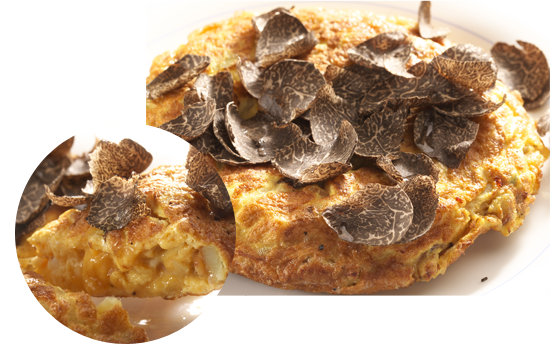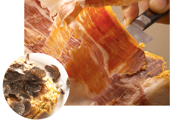 黒トリュフや生のポルチーニ茸、ハモンイベリコ・ベジョータ
